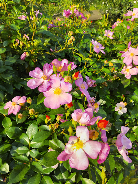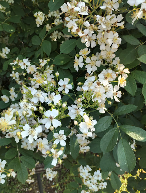 ノイバラゆずりの房咲き性が生きていて、株全体がふわっと光をまとって見える。