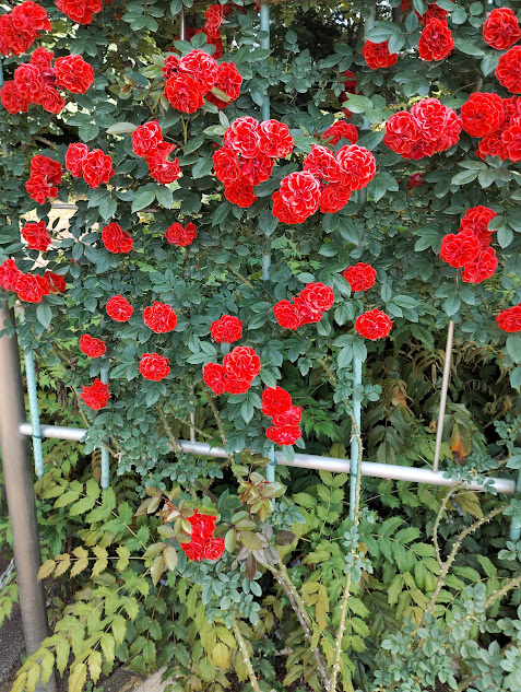 神代植物公園では、鉢植えではなく地植えのミニバラを見ることができる。