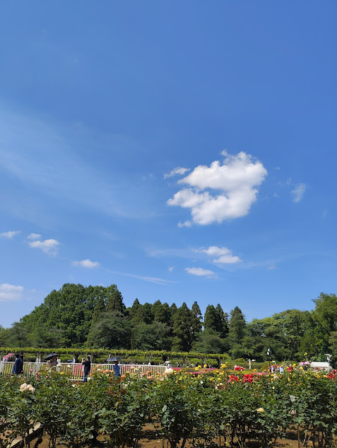 蕎麦の香りを抜け、森を抜けると──そこは光に包まれた神代植物公園のバラ園。