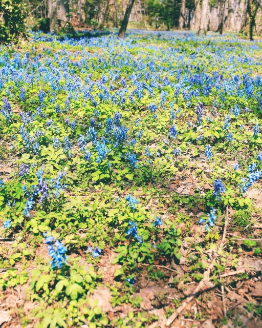 草地にはエゾエンゴサクの青がやさしく広がります。