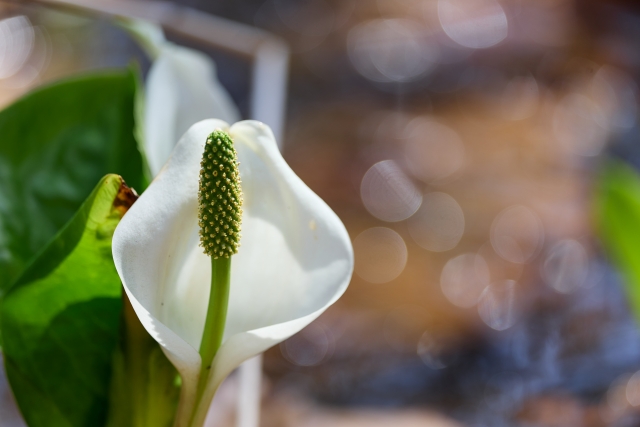 湿地ではミズバショウが顔を出し、