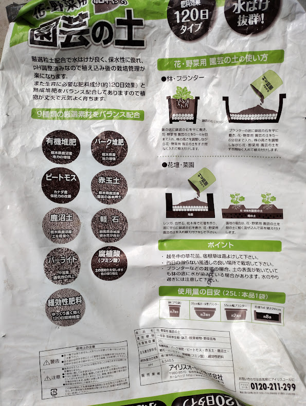 使用した土はアイリスオーヤマの培養土。